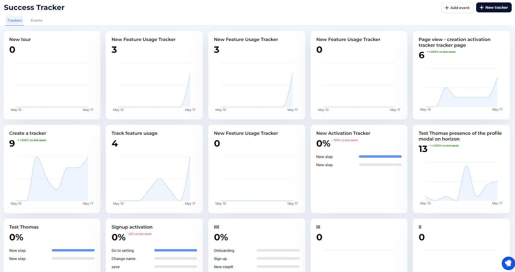 This layout provides a comprehensive view of all your trackers, helping you monitor user success and interactions with your product effectively.