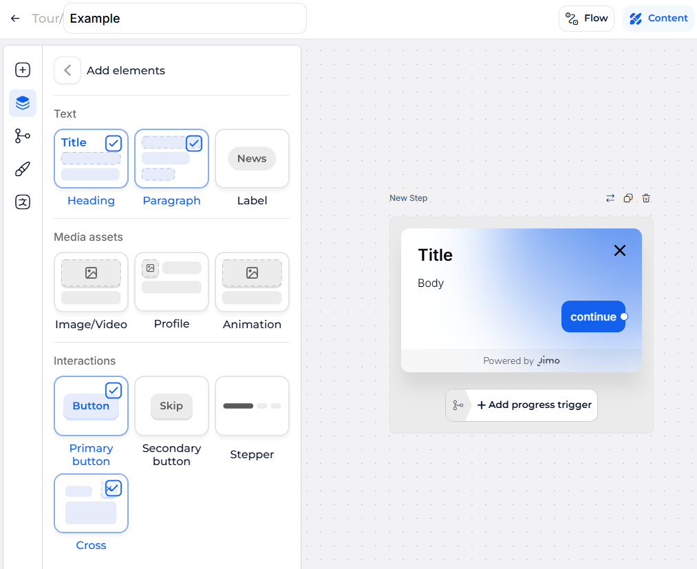 * **Progress Triggers**:  Manage custom flows between steps.