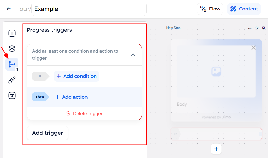> 📌  For more details on using advanced logic, visit the [**Triggers & Conditions**](https://help.usejimo.com/docs/build/triggers-and-conditions) page.