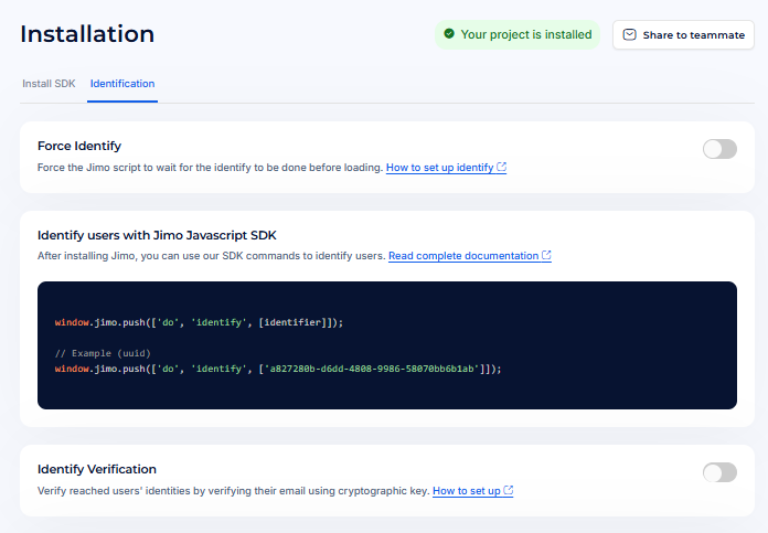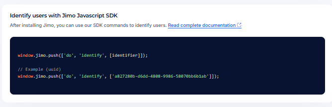 Once Jimo is installed, you can configure how users are identified to ensure accurate tracking, better personalization, and controlled MAU usage.